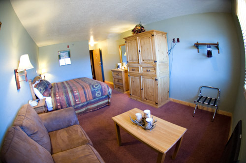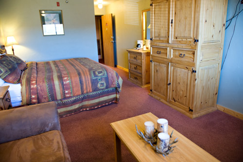 Rooms are available for 1 to 8 people with king and queen beds. Three ground level rooms have handicapped-accessible bathrooms. All other rooms have full bath with tub. All rooms have mountain views.